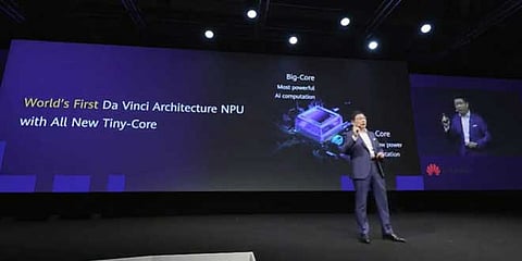 Kirin 990 (5G) is the first flagship SoC that packs a dual-core NPU built on the Da Vinci architecture, which comprise large NPU cores and tiny NPU cores. The large cores achieve high performance and power efficiency in heavy computing scenarios, while the tiny core structure, first in the industry, empowers ultra-low power consumption applications, fully tapping into the intelligent computing power brought by the innovative NPU architecture.