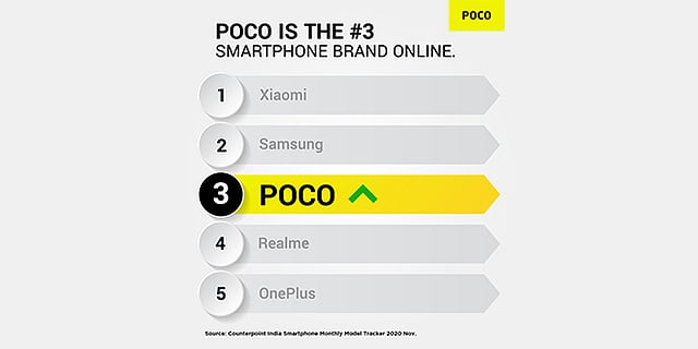 Shilpi Jain, Research Analyst, Counterpoint, commented, "POCO after becoming an independent brand in the beginning of this year is gaining momentum in the Indian smartphone market. Its smartphones like POCO C3 and POCO M2 were the main drivers of this growth. Features like large display, 5000 mAh battery and gaming processor at affordable price points made both models lucrative for consumers. In Q3 2020, POCO captured 4th position in online segment shipments, post which it rose to the 3rd position in November 2020."