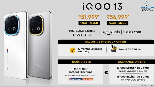 The iQOO 13 is priced at INR 54,999 (Effective Price: INR 51,999) for the 12GB+256GB variant and INR 59,999 (Effective Price: INR 56,999) for the 16GB+512GB variant. It will be available in two elegant color options: Legend and Nardo Grey. Additionally, iQOO 13 will be available for pre-booking starting December 05, 12 pm and will go on its first sale starting December 11, 2024, at 12 pm at vivo exclusive stores, iQOO e-store and Amazon.in. iQOO 13 will also be available at vivo exclusive stores and other mainline stores. This expansion ensures the convenience of experiencing and purchasing the iQOO devices.