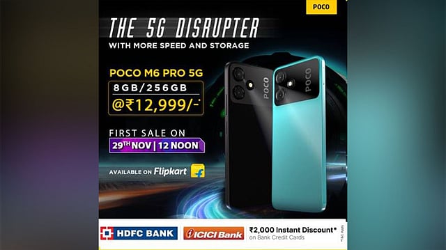 POCO M6 Pro 5G is introduced at an attractive price of INR 14,999 however consumers can buy this at a compelling price of INR 12,999 using their HDFC/ICICI Bank credit cards and get a discount of INR 2000 on Flipkart starting November 29, 12 PM.